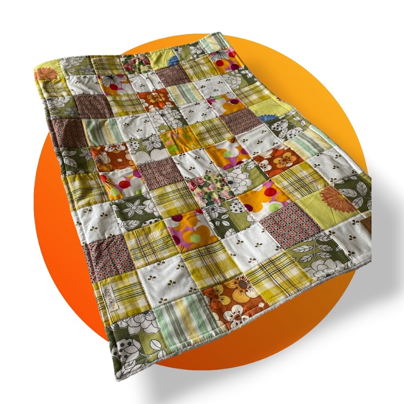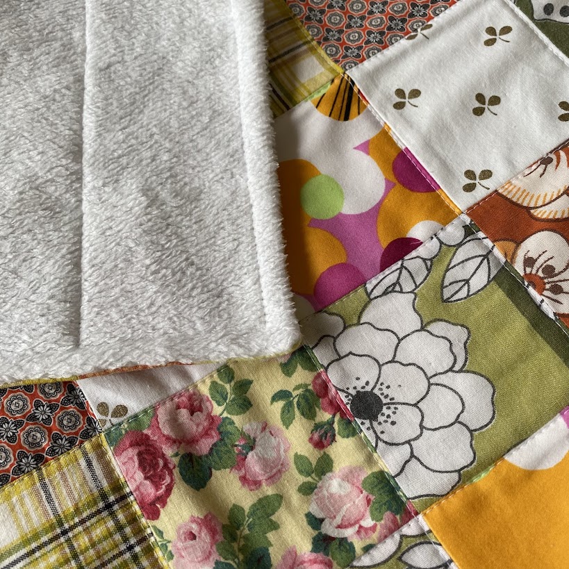 Lapptäcke i bomull och baksida av långhårig plysch.