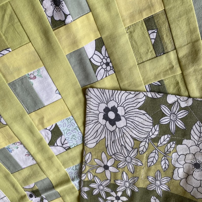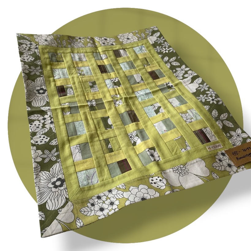 Lapptäcke i bomull fram- och baksida, gröna nyanser.