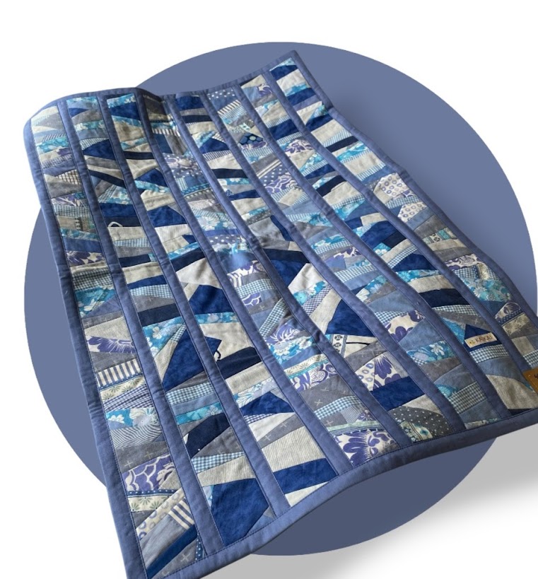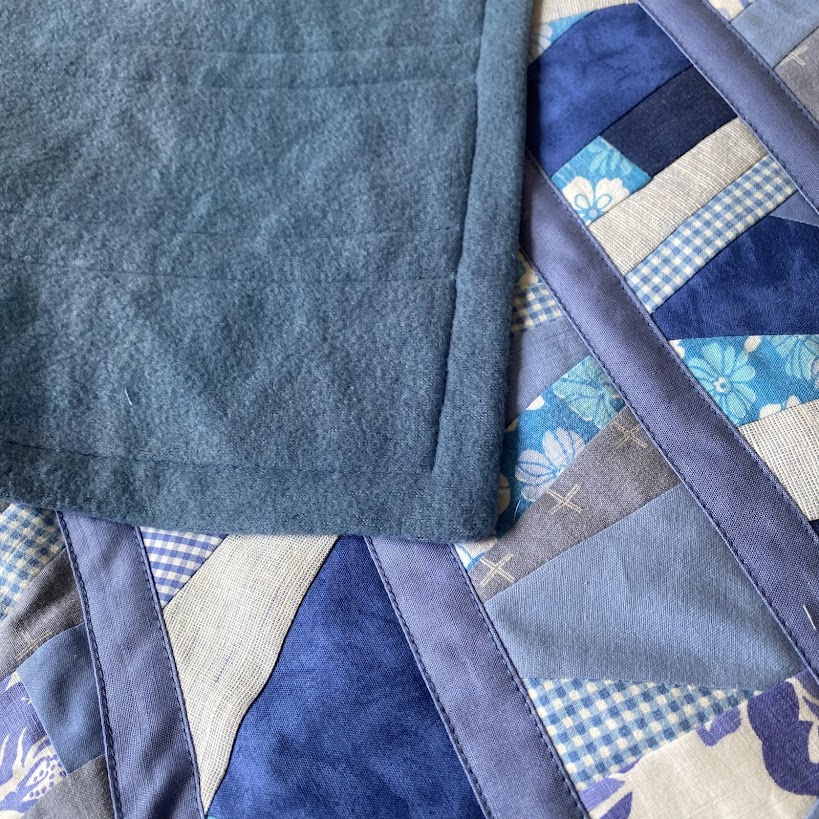 Lapptäcke i bomull och baksida av fleece, blåa nyanser.