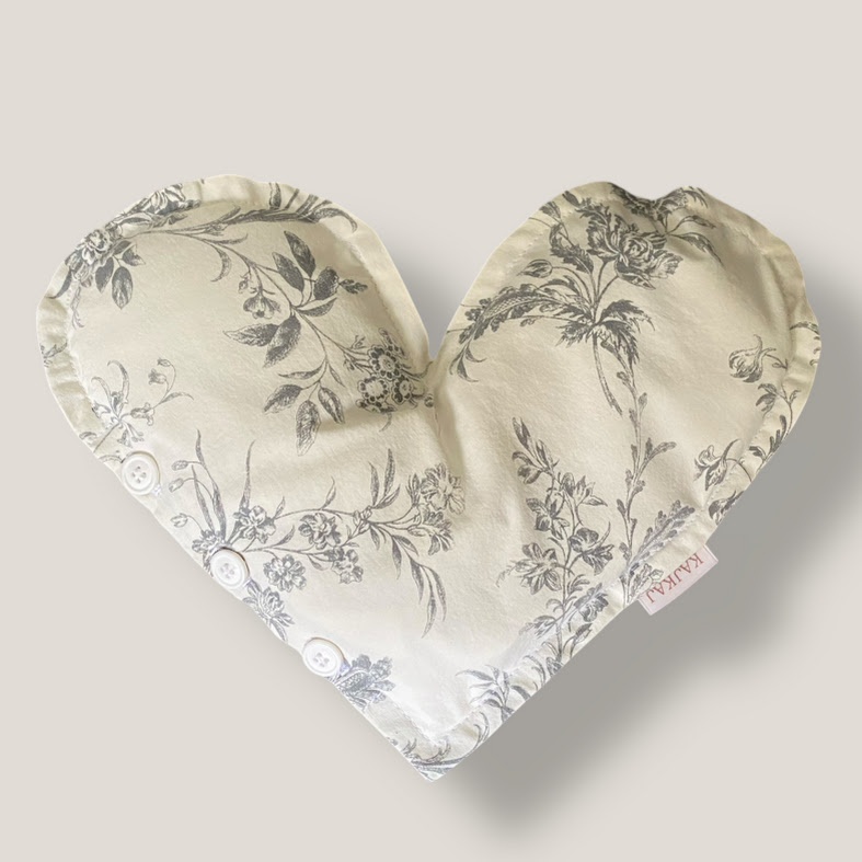 Vetehjärta sytt av återbrukat tyg och fyllt med krav- och